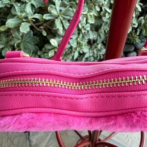 Juicy Couture Fuchsia Pink Heart Plush Bag Condition 7” X 6” CrossBody Bag