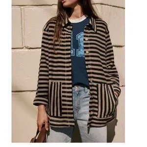 Chic button-up cardigan with bold stripes. Ideal for casual wear.