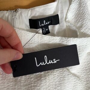 Lulus Little Bit In Love White Surplice Puff Sleeve Mini Dress Size Medium Bridal Romantic Bachelorette Short Dress. New with tag. Smoke-free home.