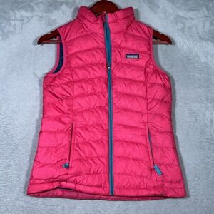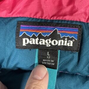 Patagonia Vest Girls Large 12 Pink Down Sweater Puffer Quilted Full Zip Hiking