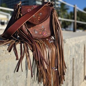 ~ 12" fringe through the gusset in the same weight leather as the bag, not only makes it completely unique but has also proven to be the perfect choice for the ultimate fringe bag that will stand the test of time.