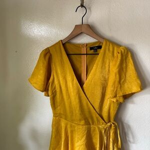 Make ever-lasting memories in style at your next soiree in the Lulus Always Forever Mustard Flutter Sleeve Tiered Satin Midi Dress! Sleek satin shapes a surplice neckline and a darted bodice, all framed by fluttering short sleeves. A high waist, with a decorative side tying detail, falls to a flouncy, tiered midi skirt. Hidden back zipper/clasp.