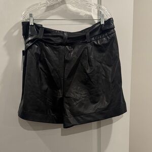 Guess Black Faux Leather High-Waisted Shorts w/ Tie Belt | Size XL | NWT