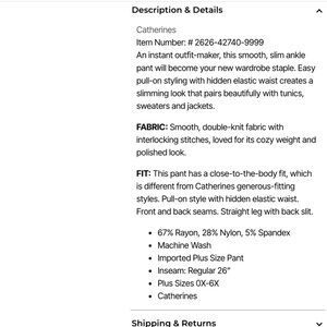 I’ve included the original listing from my purchase. These pants were clearance, and cost more than I paid to return them. 🙄. They’re SO nice, and just a tiny bit too large for me, they need a home! Turns out I’m not as “curvy” as I once was. Ponte knit is much nicer than it was in the 70’s and 80’s.