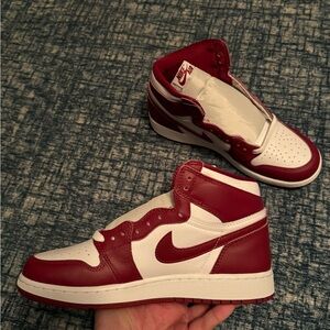 Bold red and white design. Iconic Nike swoosh. High-top style. 6.5Y = 8W. New without box.