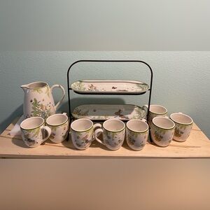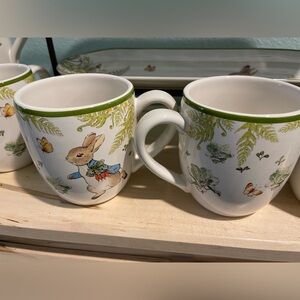 ****This item will require extra shipping, 2 boxes. The stand is a bronze color!••• Charming and beautifully coordinated Pottery Barn × Beatrix Potter Peter Rabbit™ stoneware collection. Every piece features detailed botanical artwork, butterflies, and Peter Rabbit illustrations. This set is discontinued and highly sought after, especially for spring and Easter décor.