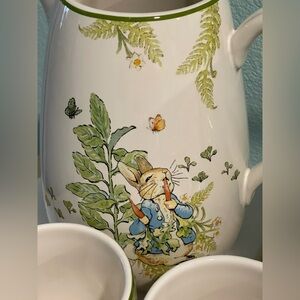 Pottery Barn Peter Rabbit Stoneware Set — Pitcher, 8 Mugs & 2 Serving Trays