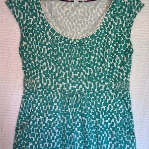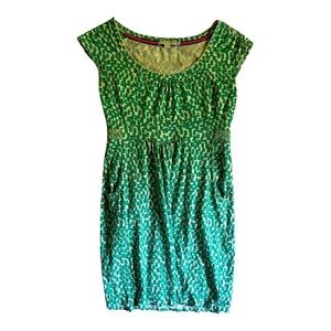 Boden Green & White Sleeveless Dress Size 10 Round Neck Knee Length w/ Pockets