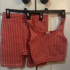 Athletic Set, Red Checkered Athletic Set, Biker shorts