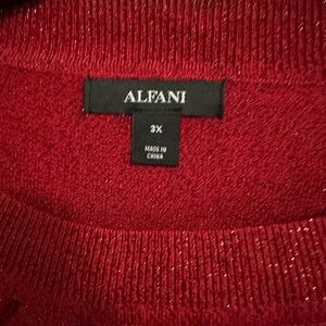 ALFANI, WOMEN'S NWT RED RAYON LONG SLEEVED BEADED/METALLIC SWEATER, SIZE 3X
