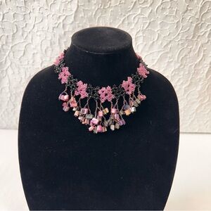 Vintage Necklace Purple Black Multicolor Shell Bali Beaded Choker Handmade Boho