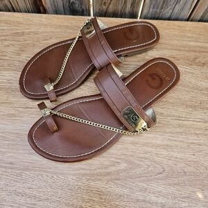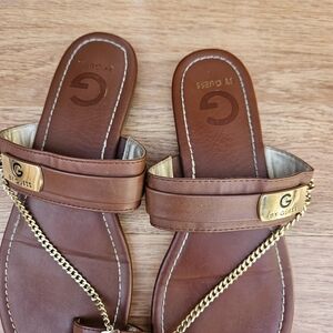 G By Guess Brown Leather Sandals with Gold Chain Size 8