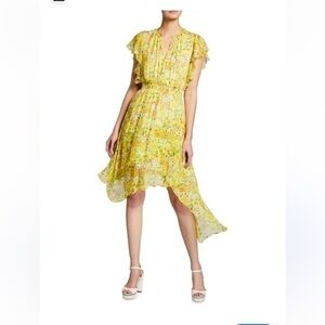 Shoshanna Candela Floral Print Yellow Asymmetrical Dress | Neiman Marcus