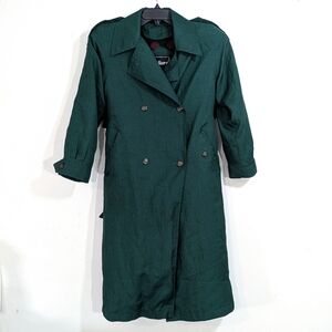 Gallery Vintage 80's Green Trench Coat - Size 4 Womens - Retro Shoulder Pads