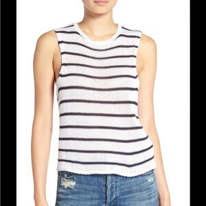 Pre owned excellent condition. Worn once or twice. Adorable navy blue and white striped knit tank. WOMENS size large.