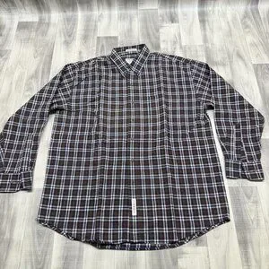✅ Mens L Savane Plaid Button-Up Shirt Process 2000 No Wrinkle Long Sleeve