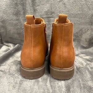 Cat & Jack ankle boots for girls. Side Zipper, stretchy panel. Tan. Sz 3. NWOT