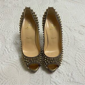 CHRISTIAN LOUBOUTIN Lady Peep Spike 150mm Gold Metallic Strass Rare Size 39