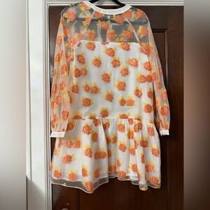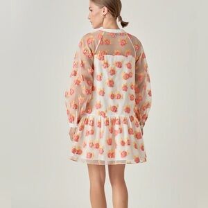 NEVER WORN English Factory Floral Jacquard Organza Long Sleeve Button Mini Dress