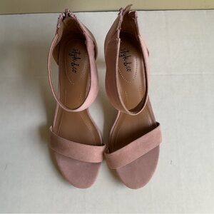 Chic blush pink heels with ankle strap. Ideal for elegant outings.