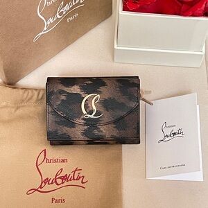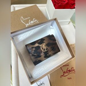 Authentic CHRISTIAN LOUBOUTIN CL debossed leopard-print leather wallet