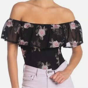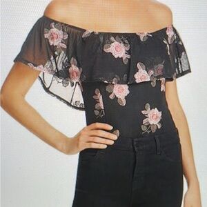 NWT Band of Gypsies Black Floral Off-Shoulder Bodysuit