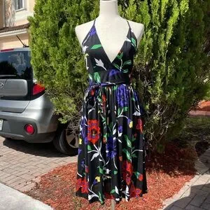 Nieves Lavi Colorful Floral Halter Wrap Dress.