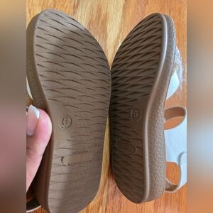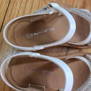 Stylish kids' sandals featuring elegant rhinestone straps. Perfect for any occasion, these white sandals offer both comfort and style.
