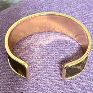 Upcycled Louis Vuitton Brown and Gold Monogram Cuff Bracelet