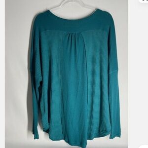 NWT Free People Leo Soft Waffle Ribbed Knit Teal Thermal Henley Shirt Size XL