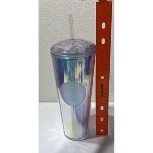 Starbucks Iridescent Rainbow Diamond Crystal Cold Cup 24oz Venti Tumbler W/straw