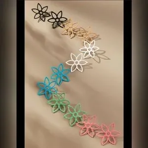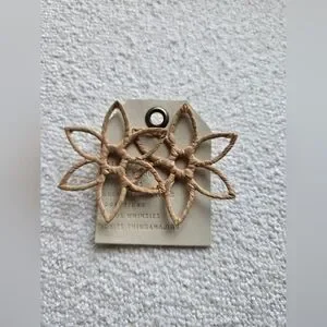 Anthropologie, Open Flower Raffia Woven Earrings, Tan - NEW!