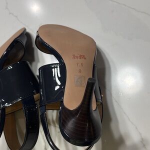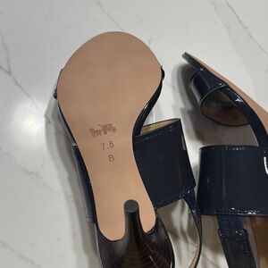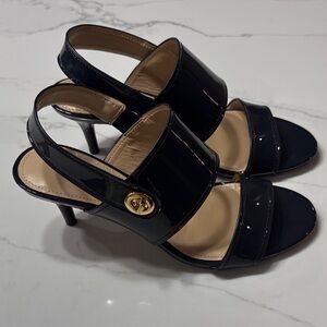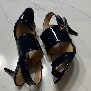 Coach Glossy Dark Blue/navy Heels with Gold Accent
