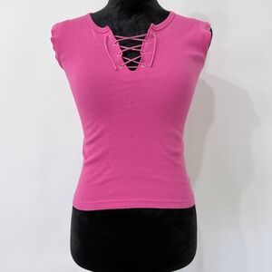 Abercrombie & Fitch Y2K Pink Lace Up Baby Tee Size Small Coquette Crop Top