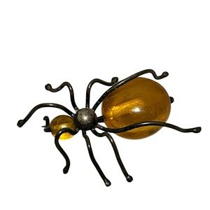 Vintage sterling silver with lucite amber bead spider brooch