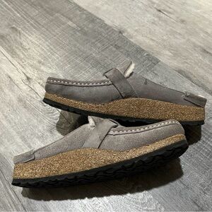Cozy and stylish moccasins. Soft suede material. Ideal for casual wear. BIRKENSTOCK Buckley NARROW Shearling fur footbed Clogs Mules Moccasin Shoes