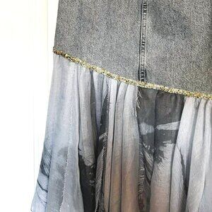 A unique handmade designer skirt created using a fashionable contrast of textures — structured denim paired with lightweight, flowing viscose. This mix reflects a modern fashion trend and creates a striking, artistic silhouette with beautiful movement.