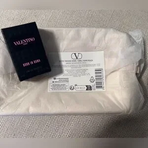 Brand New, unused. Authentic Valentino Cream Cosmetic Bag and comes with 1 mini fragrance travel size