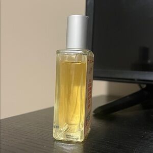 See third photo for amount left. Basically full, 1.7 fl oz glass bottle with a sprayer. Does not come with box