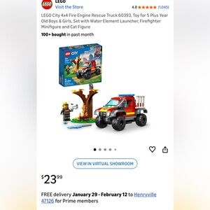 LEGO City 4x4 Fire Engine Rescue Truck 60393, Toy for 5 Plus Year Old Boys & Girls, Set with Water Element Launcher, Firefighter Minifigure and Cat Figure