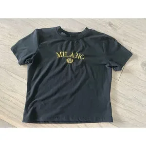 Milano Embroidered T Shirt Black with Gold Lettering Size Small