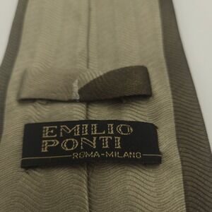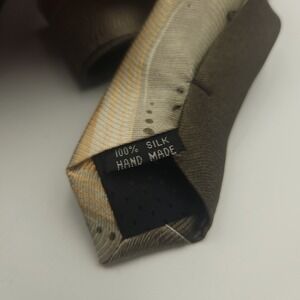 Emilio Ponti 100% Silk Handmade Tie Green Beige Gold Stripe Dot 3.5" Wide Italy