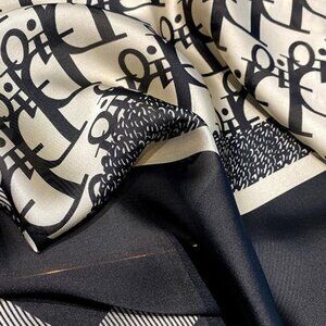 Luxury Silk Scarf Elegant Monogram Pattern Lightweight Shawl Wrap Versatile