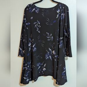 Avenue Navy Blue Purple Floral 3/4 Sleeve Scoop Neck Tunic Blouse Size 22/24, EUC