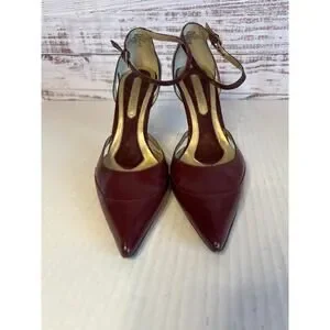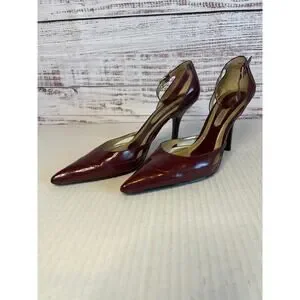 Nine West Vintage Y2K Folowe d'Orsay Burgundy Ankle Strap Heels size 8