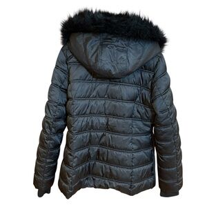 Nautica Women's Puffer Zip Off Hood With Faux Fur Trim Jacket (Black,XS) This heavyweight puffer jacket is the perfect layer for extra-cold days. Made from water-resistant stretch fabric that helps repel water, it has a removable faux-fur hood, full-zip closure, and multiple pockets. 100% polyester. Fill: 100% post-consumer recycled polyester. Water-resistant construction helps repel water. Classic fit. Long sleeves. Thumbhole cuffs.