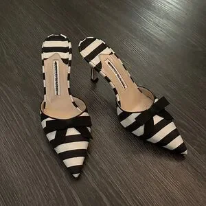 Manolo Blahnik Black and White Striped Heels