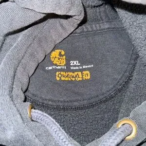 Carhartt hoodie in gray with gold logo details. Soft and durable.