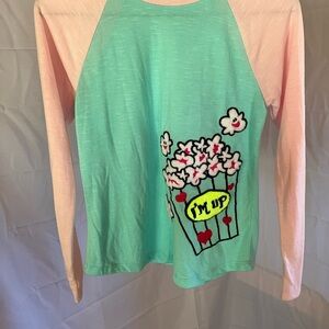 Two tops and a pair of jeggings. Short sleeve NWT top. Long sleeve popcorn top. Denim jeggings.