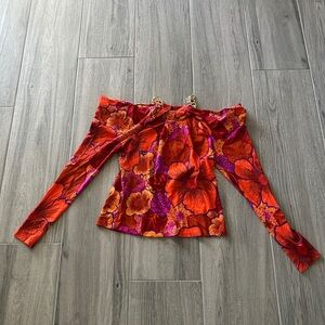 INC off shoulder longsleeve floral top with gold chain neck NWT size small